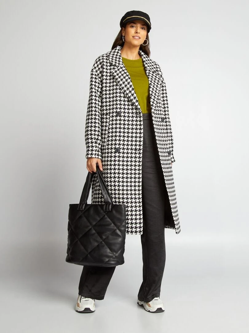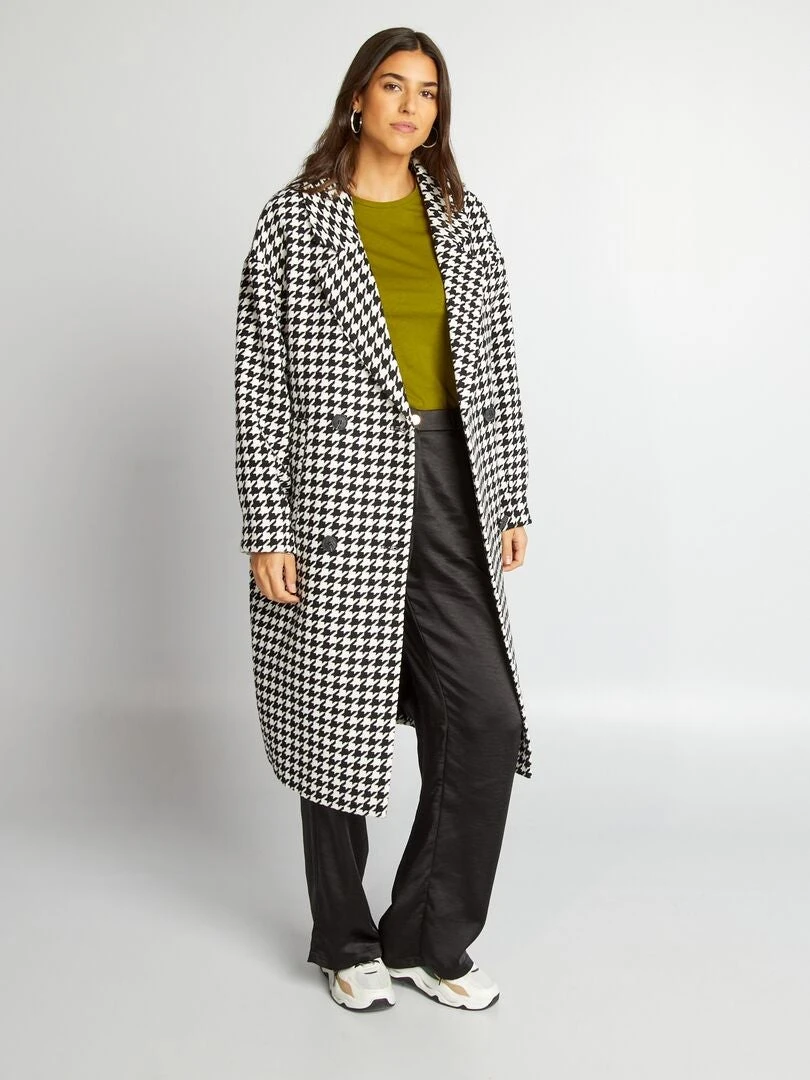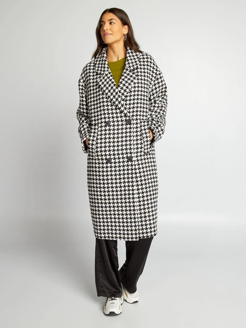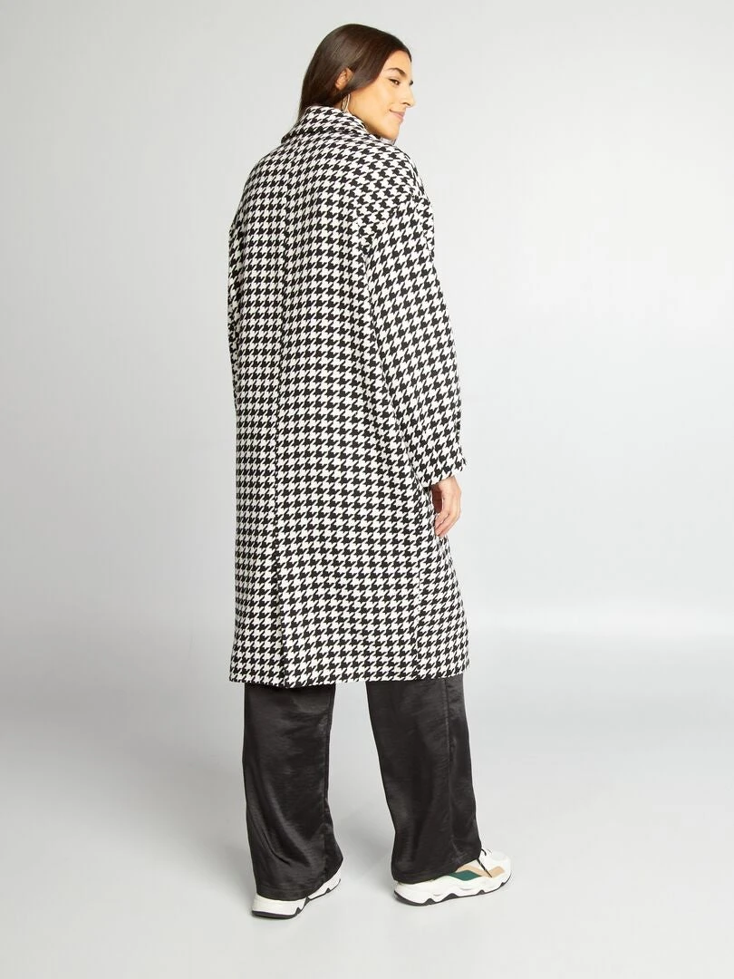 Un abrigo largo con estampado de pata de gallo.