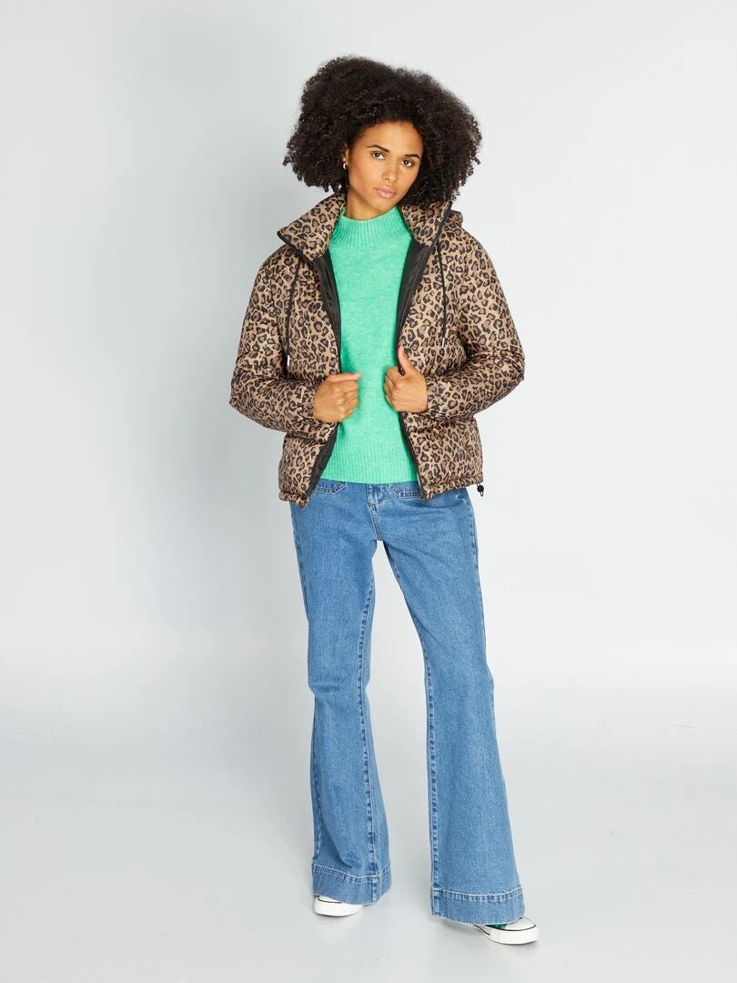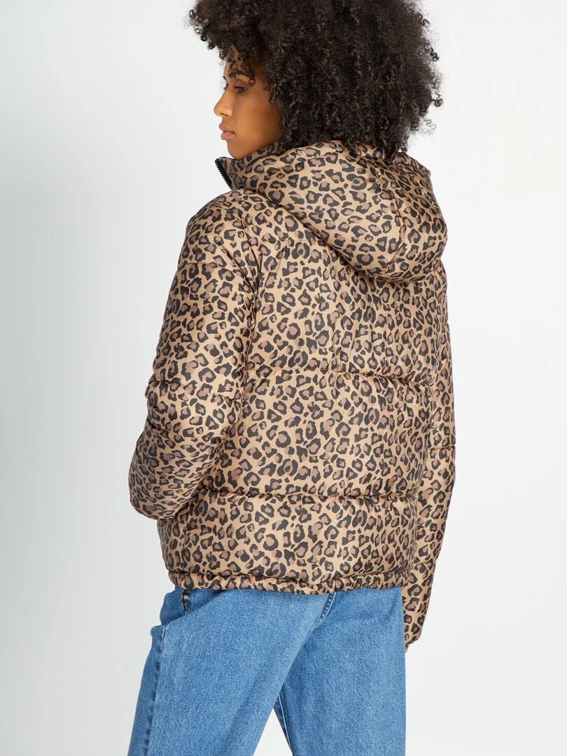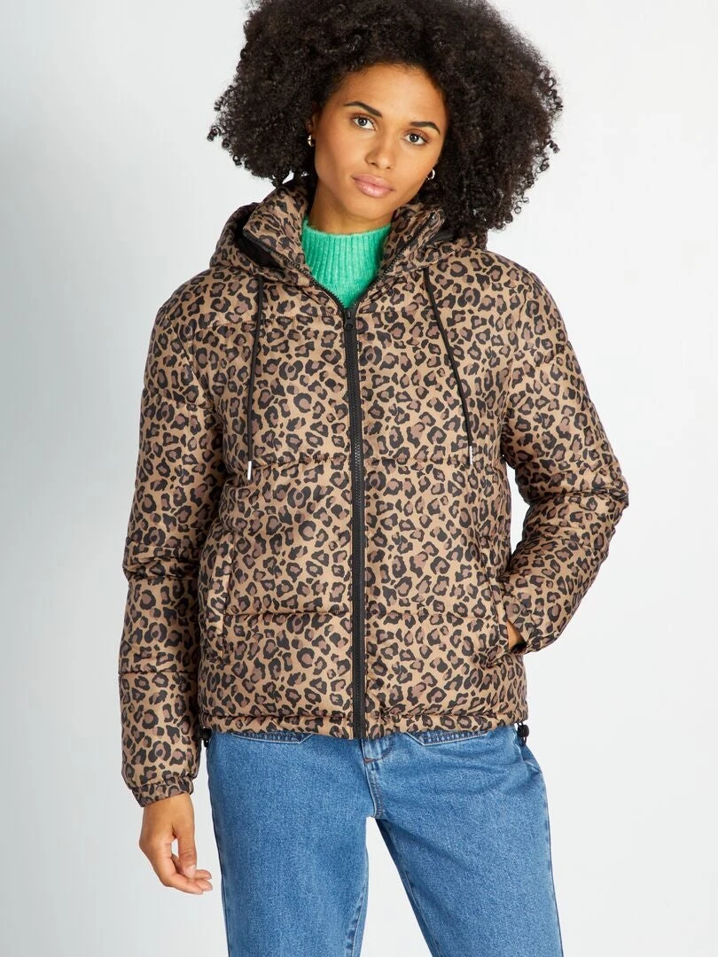 Un anorak corto muy práctico cuando el cielo se nubla. ¡Nos encanta el estampado de leopardo!