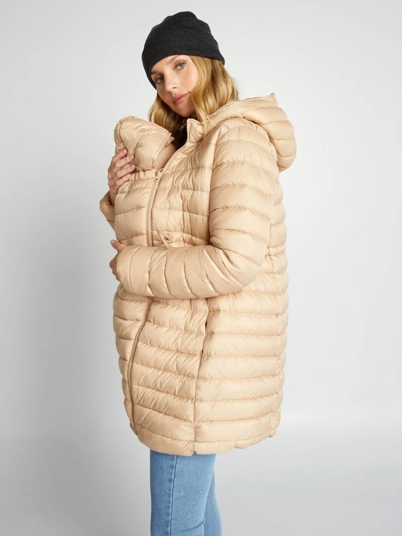 El anorak ideal durante y después del embarazo. ¡Y el bebé también tiene derecho a su capucha! Importante: el protector de bebés se utiliza por encima de tu portabebés.