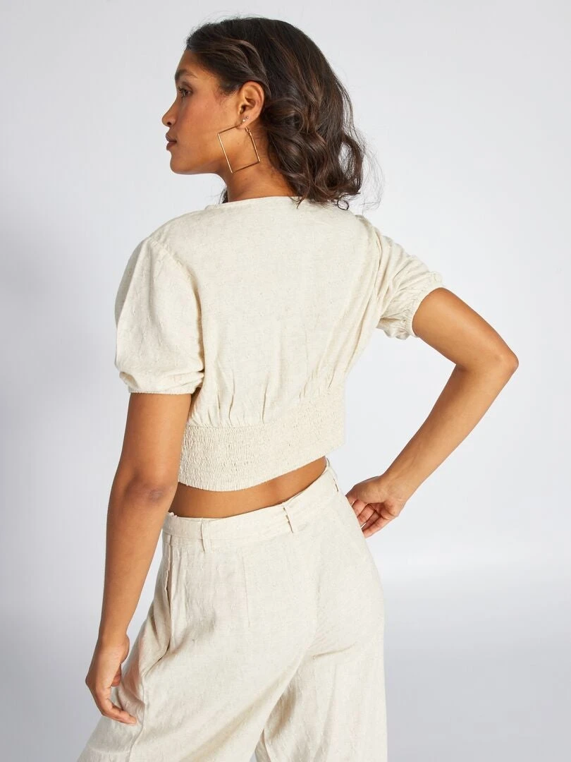 Nos encanta el estilo natural de esta blusa de lino y algodón. ¡Encantadora! 😉