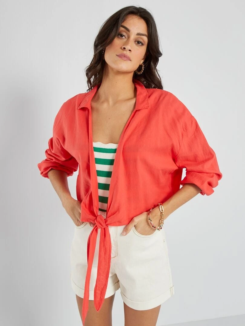 Una blusa perfecta para la temporada veraniega y primaveral. Te encantará su tejido con lino y su corte cropped.