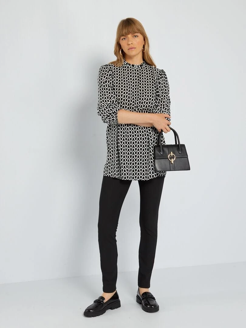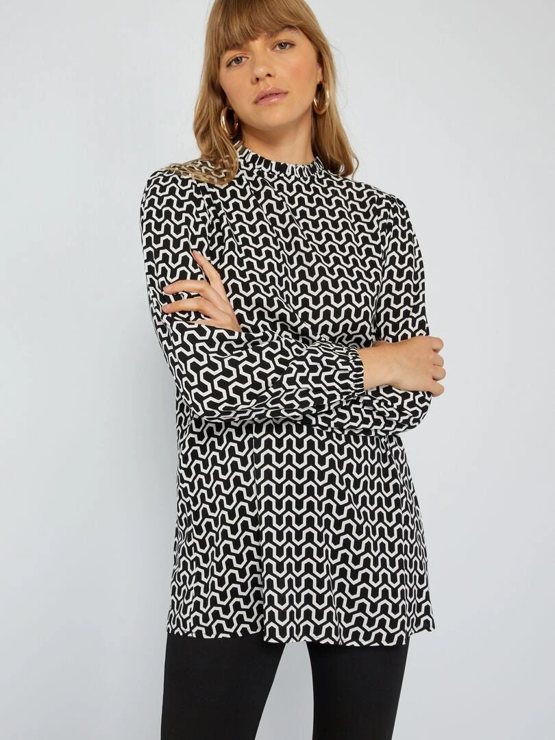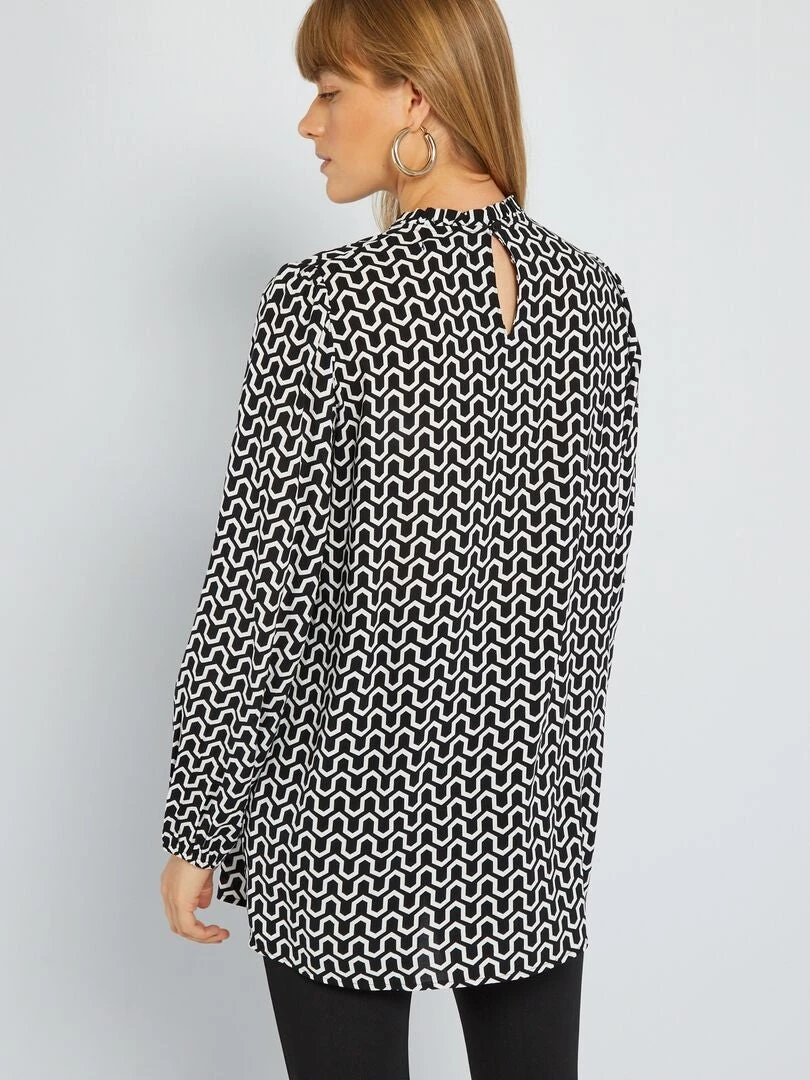 Una blusa vaporosa con un estampado muy original que añade un toque de fantasía a tu look.