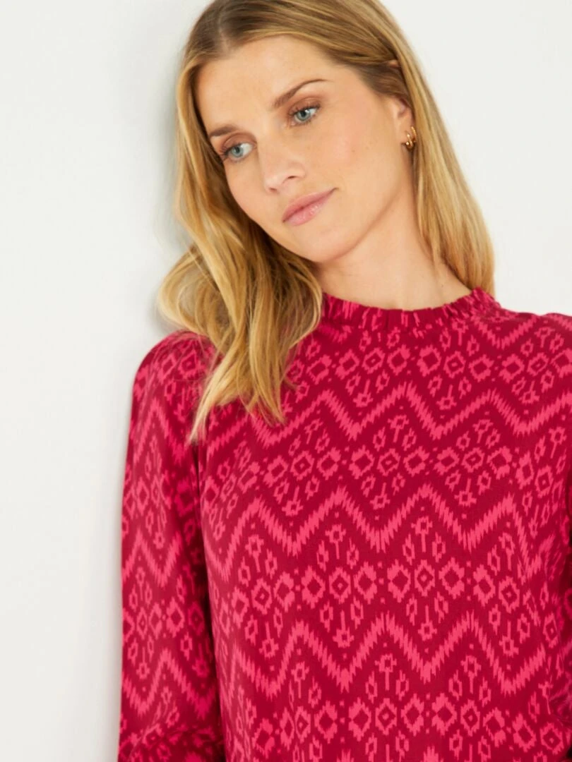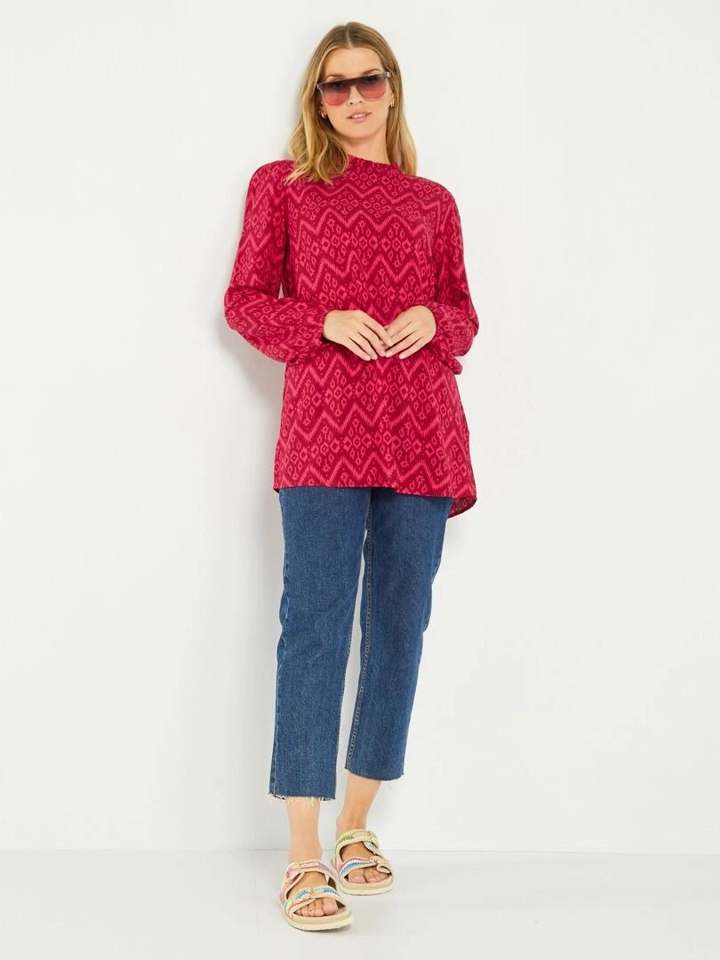 Una blusa vaporosa con un estampado muy original que añade un toque de fantasÃa a tu look.