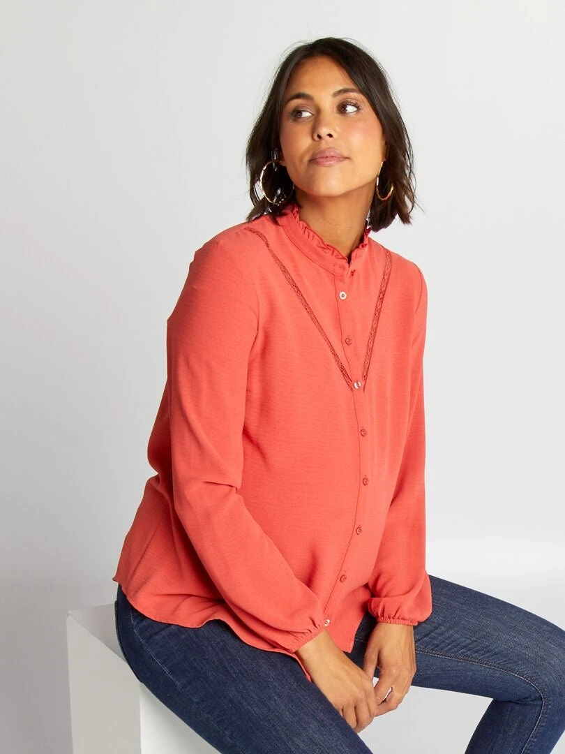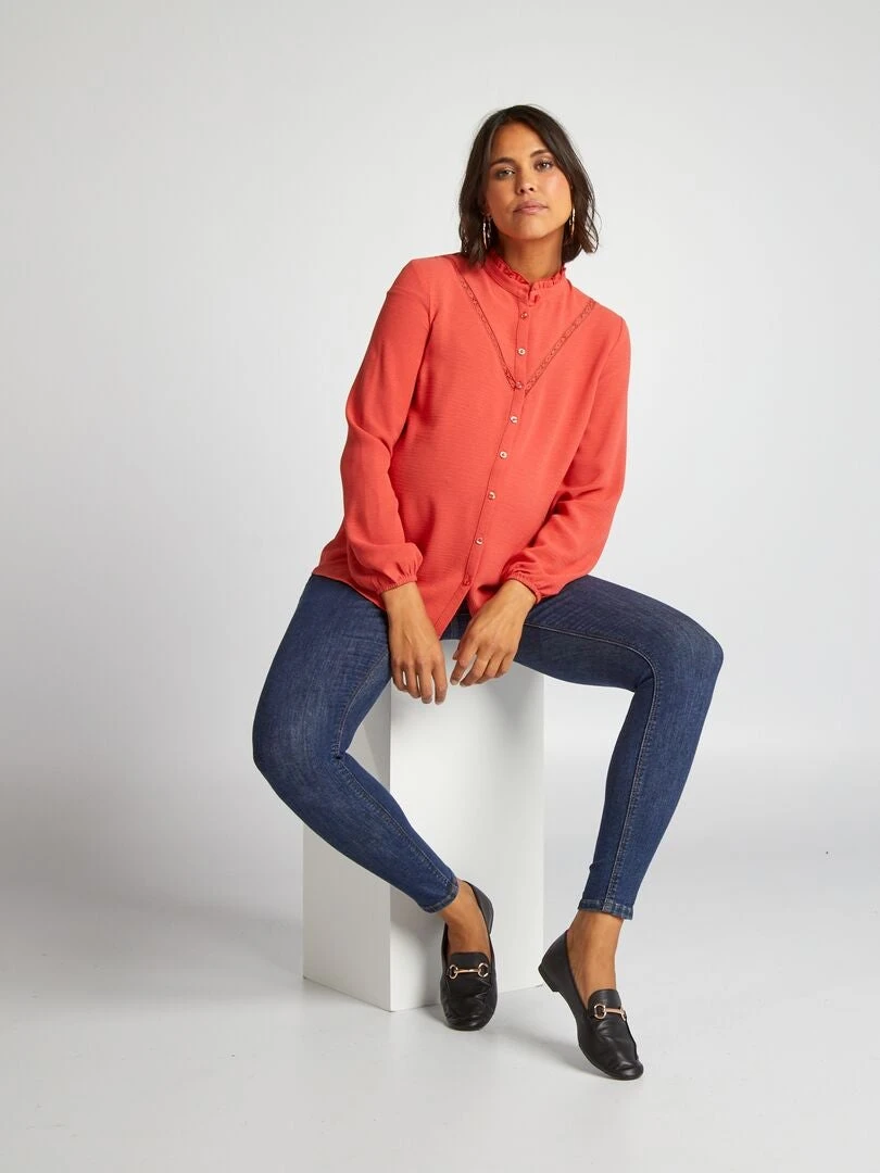 Luce un embarazo elegante con esta blusa calada tan vaporosa.