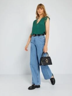¡Una blusa femenina con su tacto satinado y sus detalles de encaje!