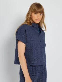 Una camisa moderna y elegante. Nos encanta su bordado de fantasía por delante y su punto calado