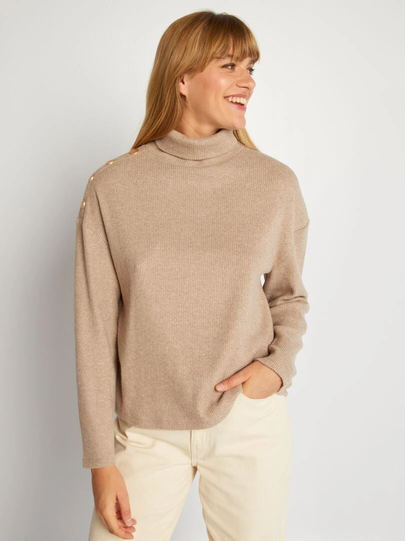 ¡Perfecta para cambiar de look! Una camiseta original con cuello alto y un material suave