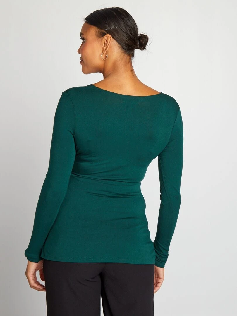 Una camiseta con cuello cruzado y drapeado bajo el pecho que ofrece un confort total.