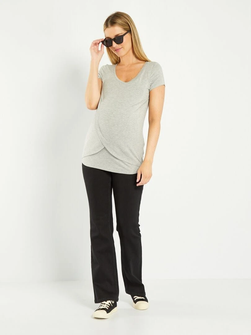 Una camiseta sencilla con una abertura delantera para facilitar la lactancia.