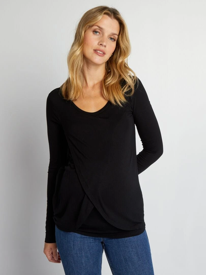 No te quedes sin esta camiseta de premamá que aúna feminidad y practicidad con su cierre cruzado en la parte delantera.