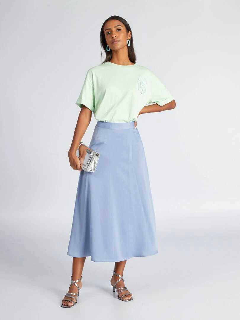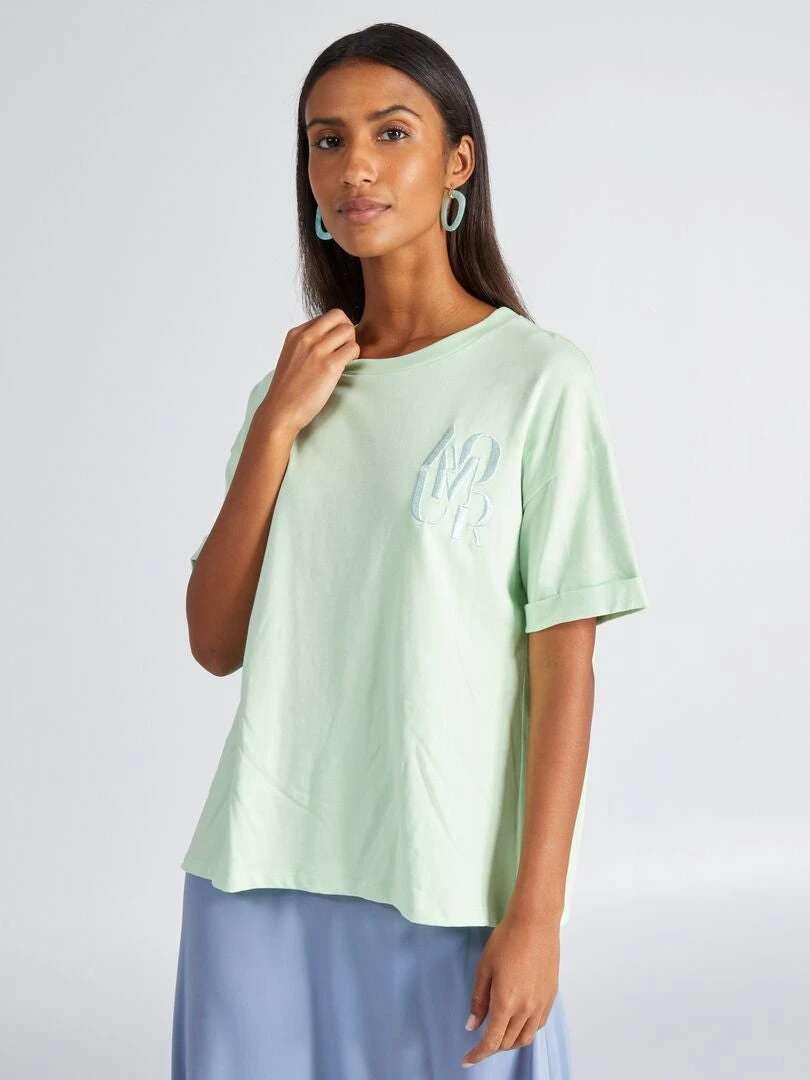 Una camiseta con estilo con un bordado en la parte delantera. Un color veraniego y un corte perfecto para esta prenda de punto.