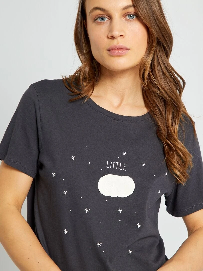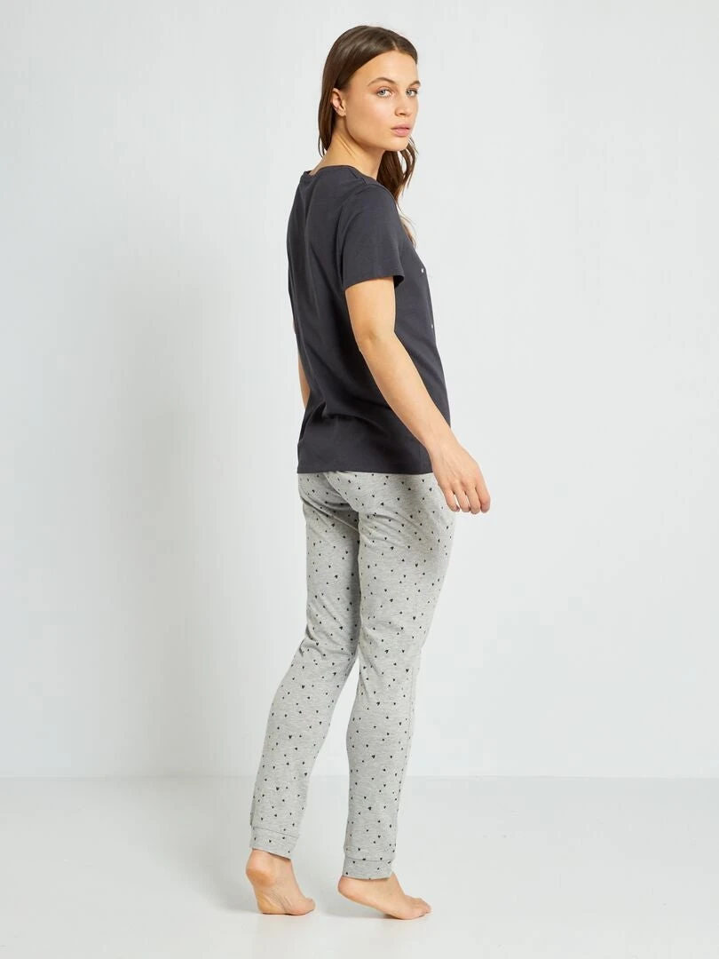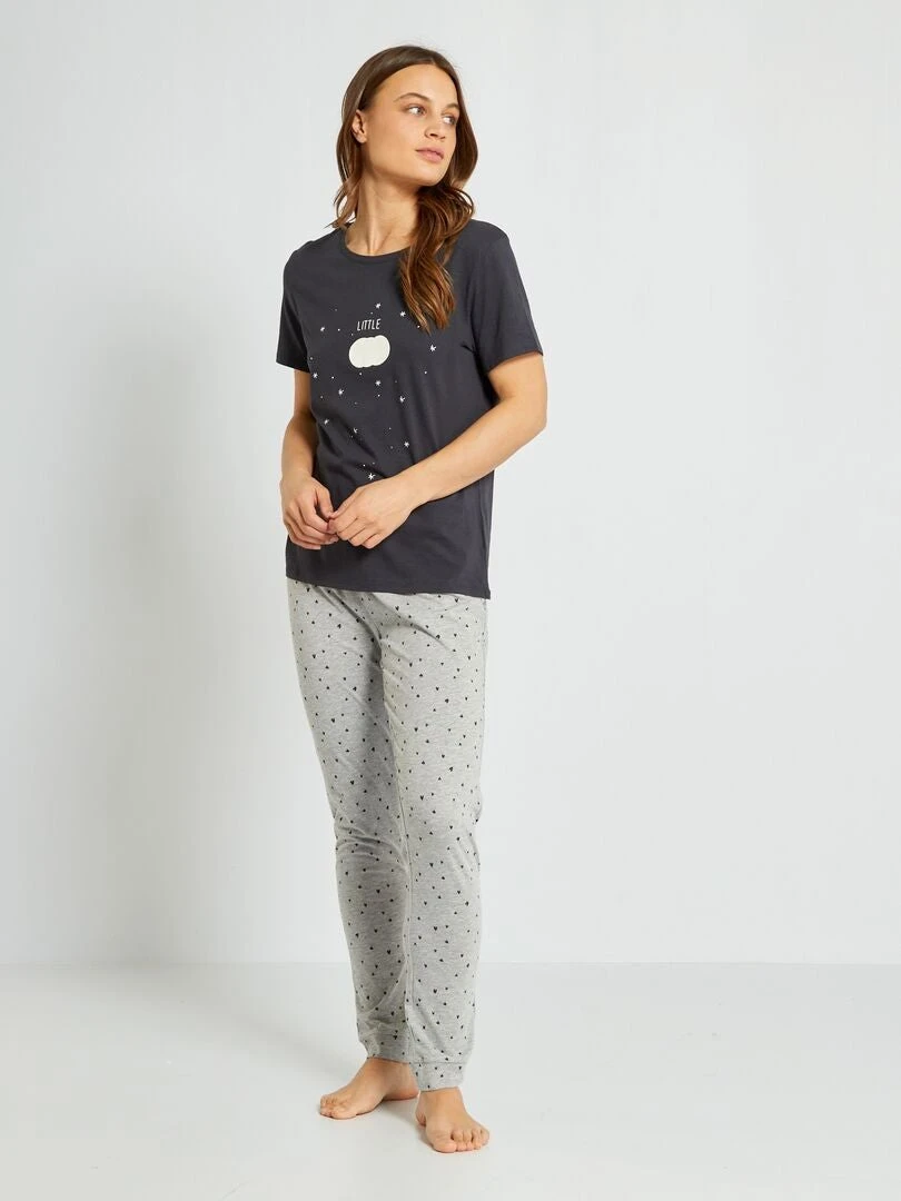 Un pijama con camiseta estampada y pantalón con motivo.