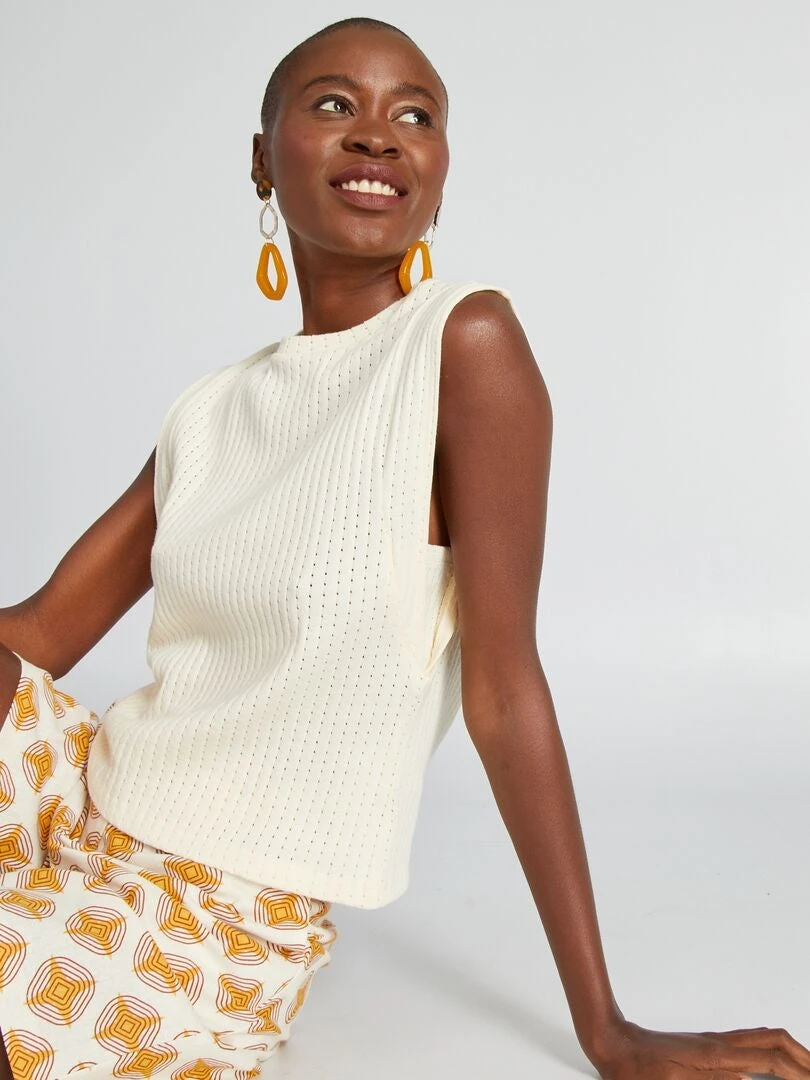 Camiseta Sin Mangas De Punto De Canalé Con Cuello Barco – HO_SURFTHE