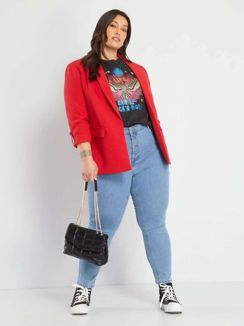– Cuello redondo + Nuestra modelo lleva una talla XXL y mide 1,80 m