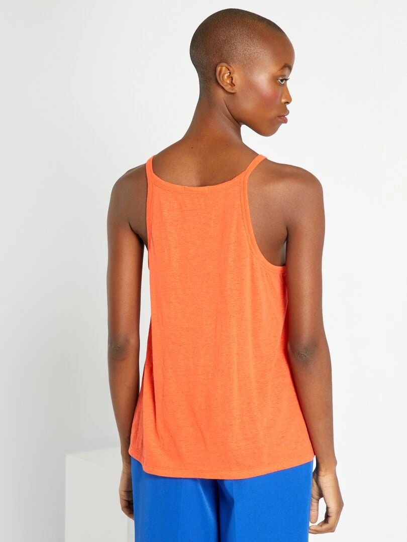 Una camiseta de tirantes colorida y cómoda gracias a su tejido de lino.