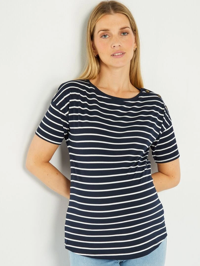 Esta camiseta marinera será una prenda imprescindible para las embarazadas que desean comodidad y elegancia durante el embarazo y también después.