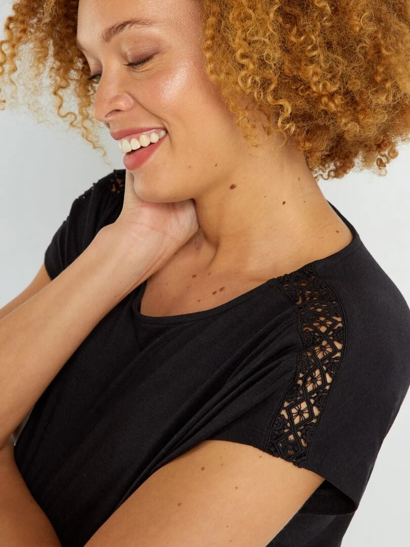Una camiseta ligera con encaje en los hombros.