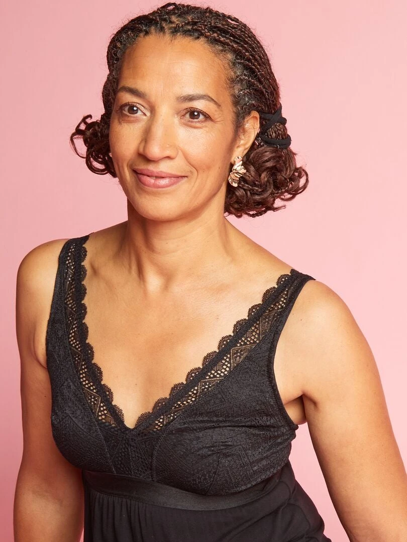 – Forro interior de microfibra en las copas con pequeñas aberturas para introducir una prótesis fácilmente si es necesario
