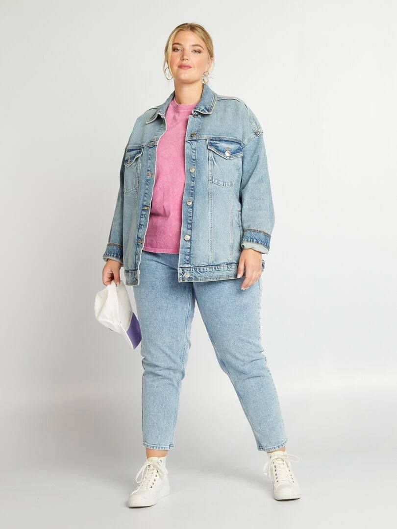 Luce un estilo atrevido con esta cazadora vaquera que aporta un toque de personalidad al look.