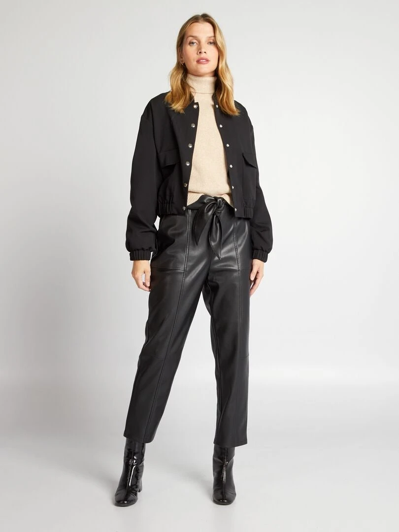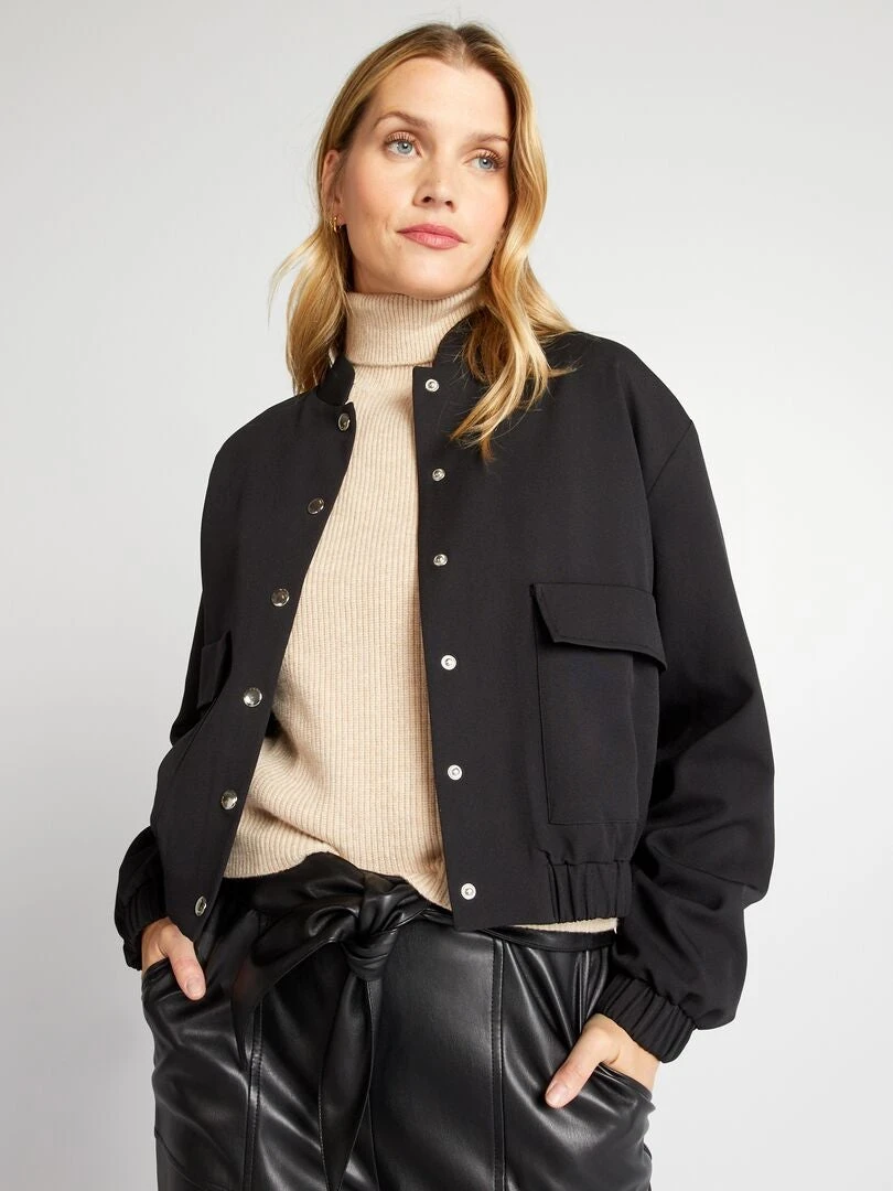 Te encantará esta chaqueta corta estilo campus para lucir un look deportivo chic.