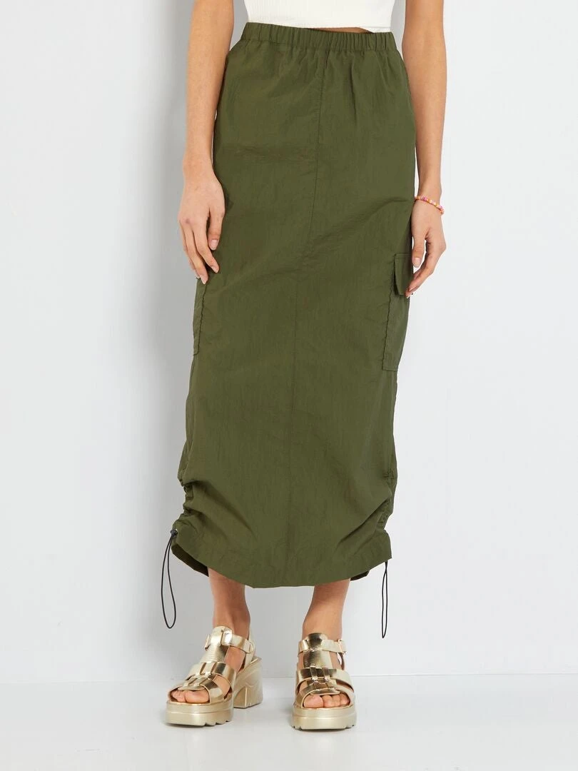 Una falda larga de tejido parachute, una prenda a la última que no puede faltar en el armario.