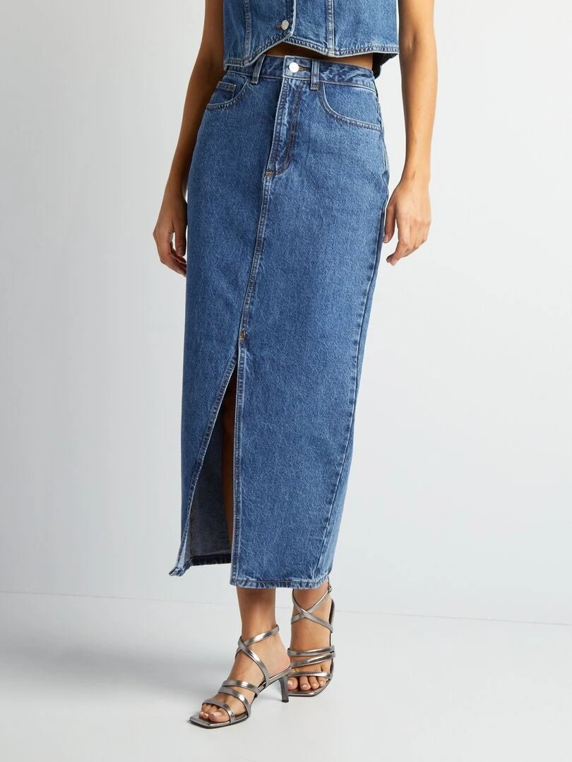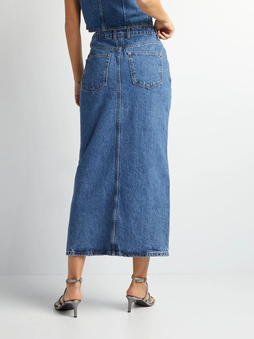 Gracias a su corte recto, esta falda larga para mujer aporta un toque atemporal.