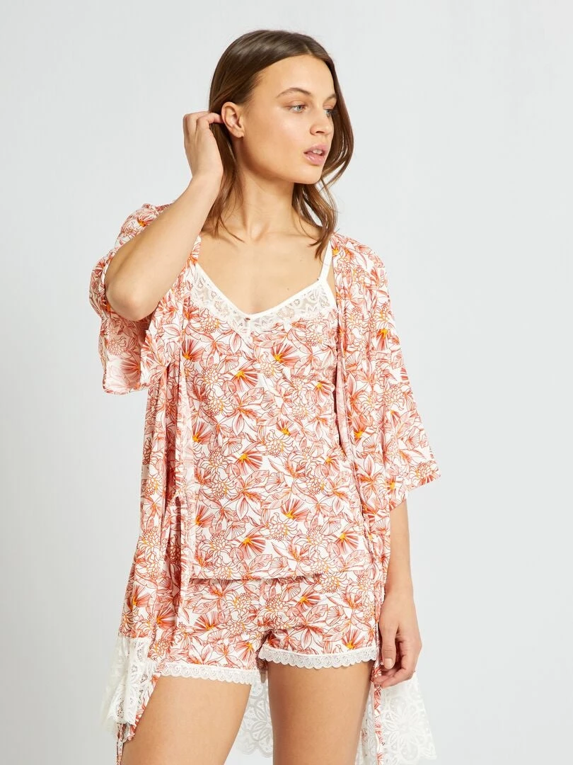 Un kimono estampado con un material suave.