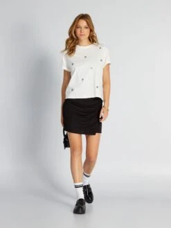 Camiseta Con Cuello Redondo Y Mensaje Bordado – CUIDADOS PERSONALES