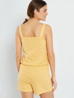 Mono De Pijama Con Estampado De ‘vichy’ – Amarillo