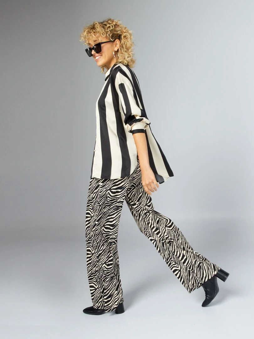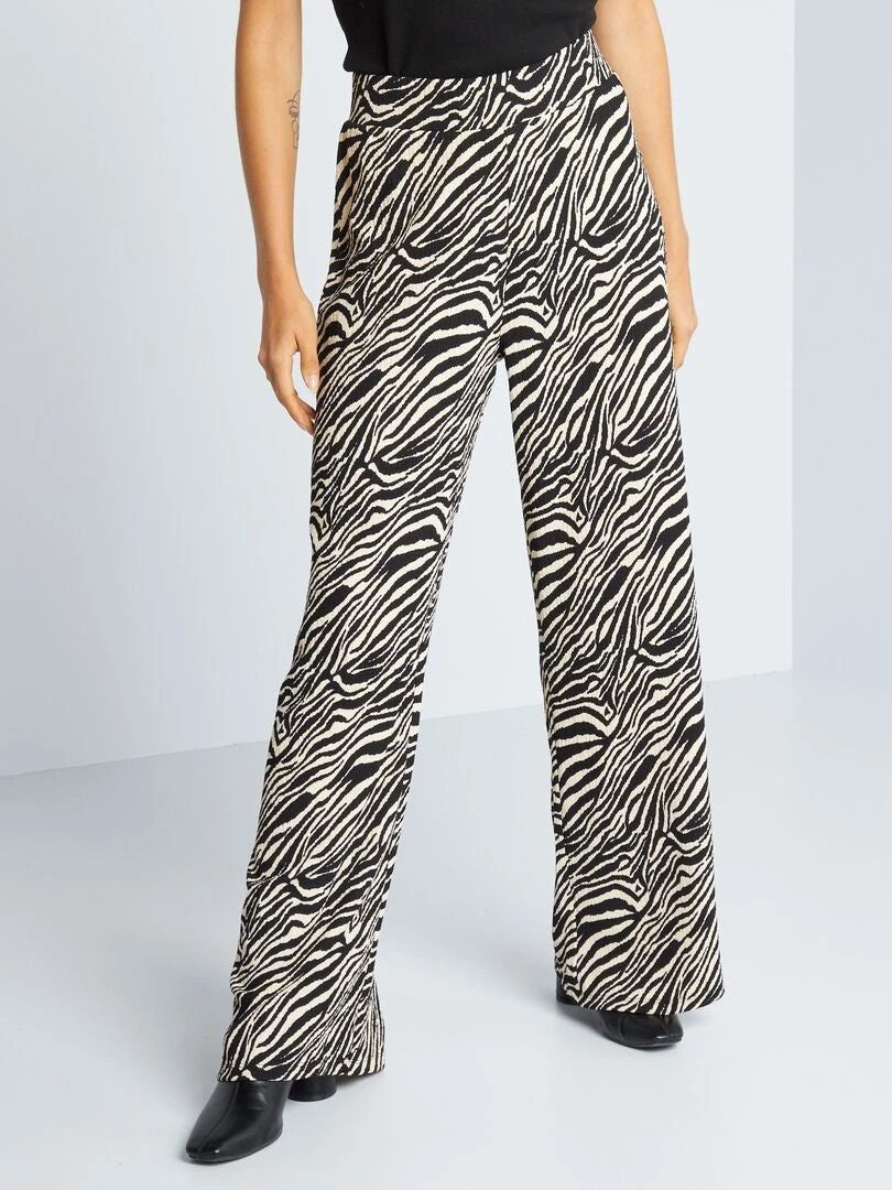 Este pantalón queda bien a todas las morfologías gracias a su cintura elástica. Te encantará su estampado de cebra
