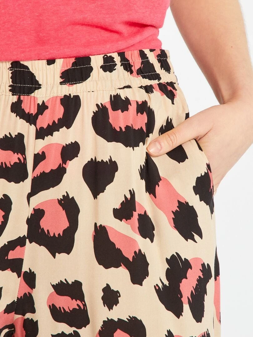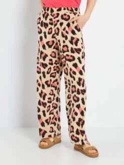 El estampado de leopardo es perfecto para los looks de entretiempo. Este pantalón combina fácilmente con una camisa o un jersey.