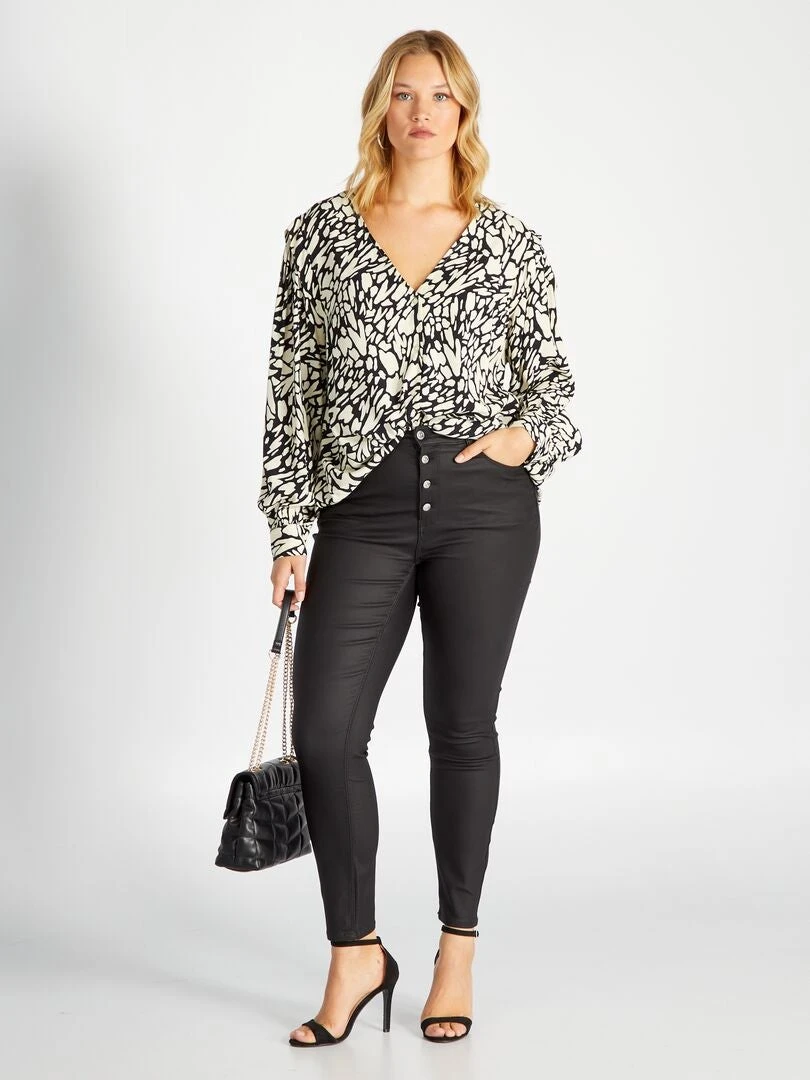 Un pantalón encerado y elástico que podrás combinar con una parte de arriba desenfadada para conseguir un estilo chic cómodo que no pasa de moda.