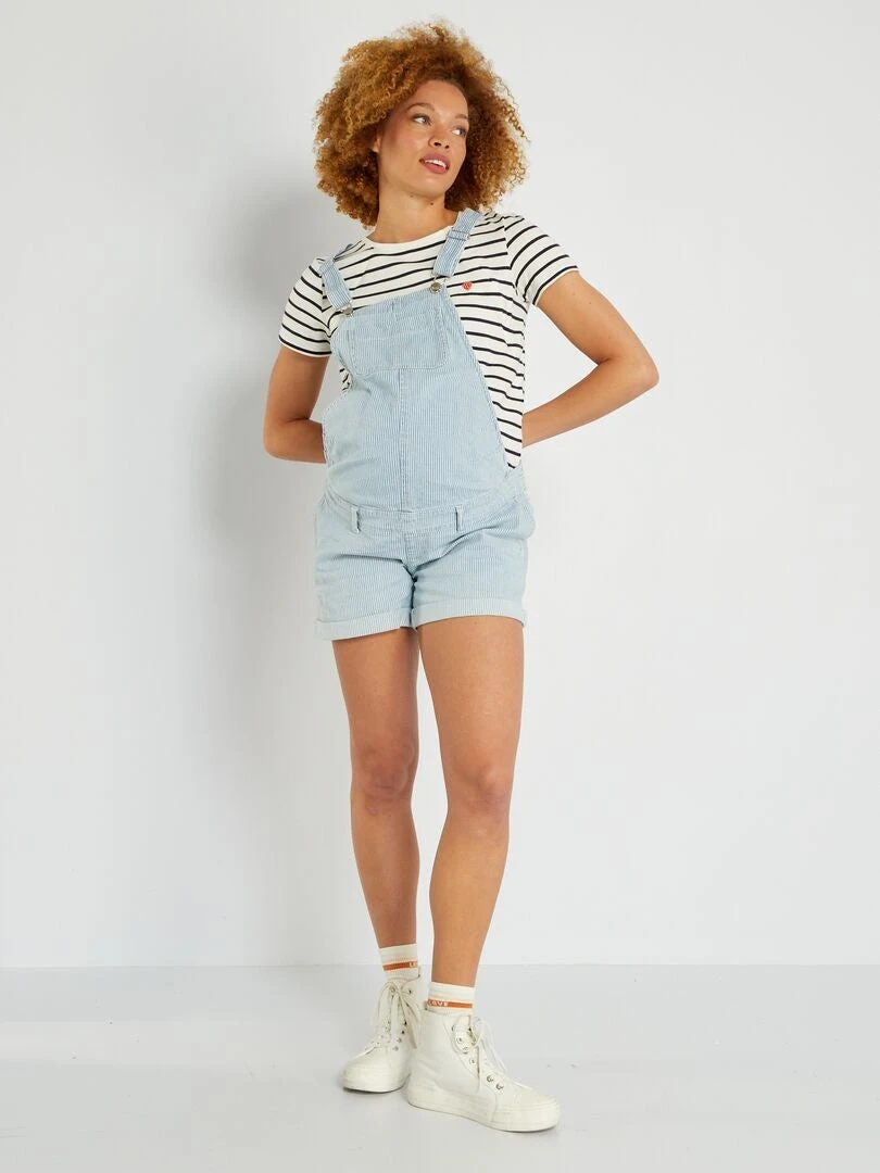 ¡Disfruta del buen tiempo con este peto vaquero corto de premamá!