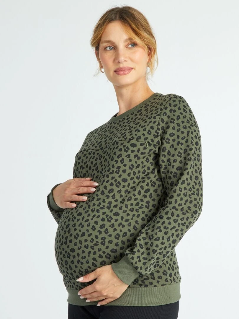 Nos encantan los estampados de esta sudadera de lactancia.