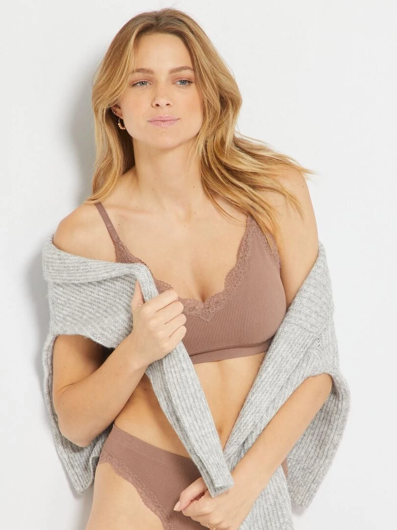 – Sujetador de punto de canalé fino Escote de pico