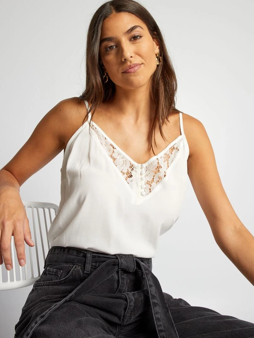Un top vaporoso y elegante, perfecto con un short de talle alto o unos vaqueros.