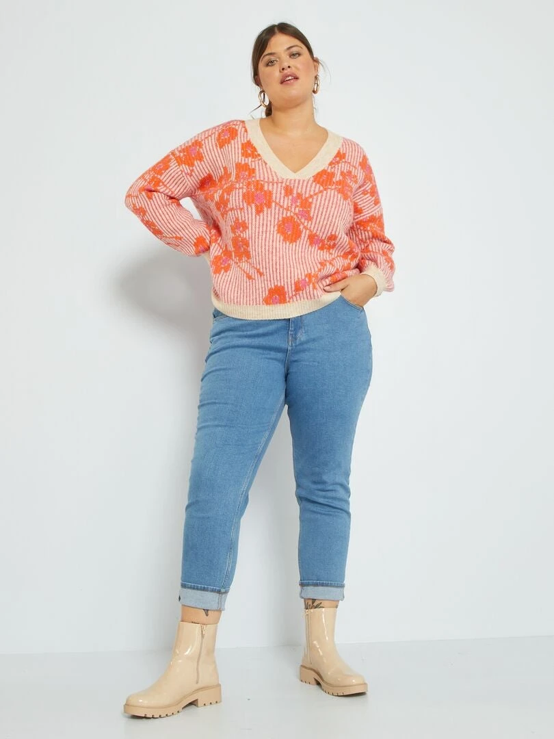 Pantalón mom con cintura ajustable y tejido de algodón eco-concepción. La practicidad de este vaquero mom te conquistará.