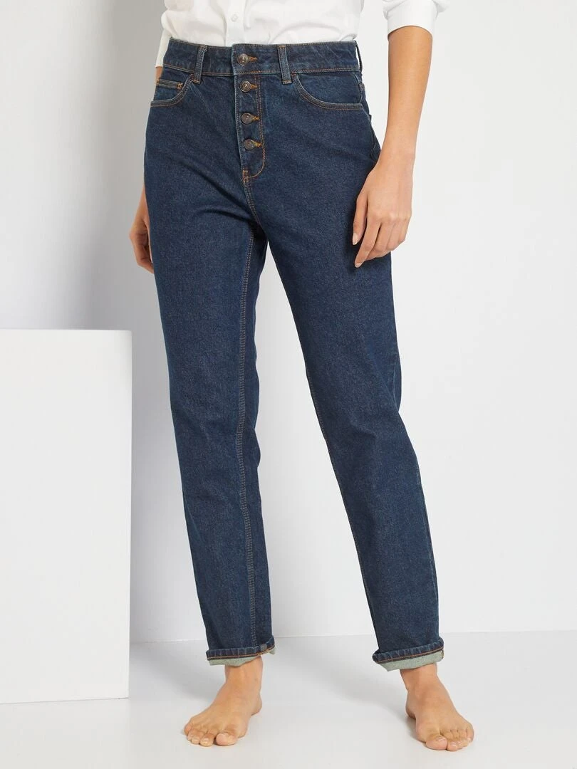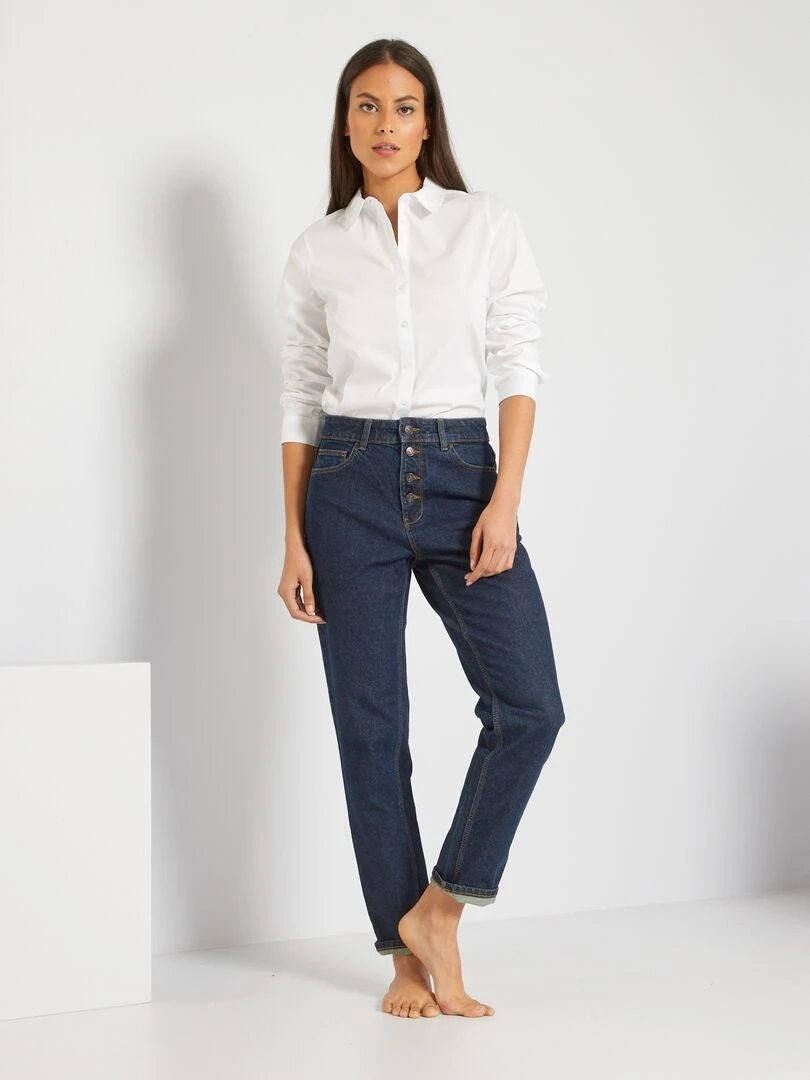 Un vaquero que se hará un hueco importante en tu armario. Su corte mom, su talle alto y su cierre de botones te ofrecerán un look a la última. Solo tienes que combinarlo con unas zapatillas y un top básico para conseguir un estilo de 10 😉