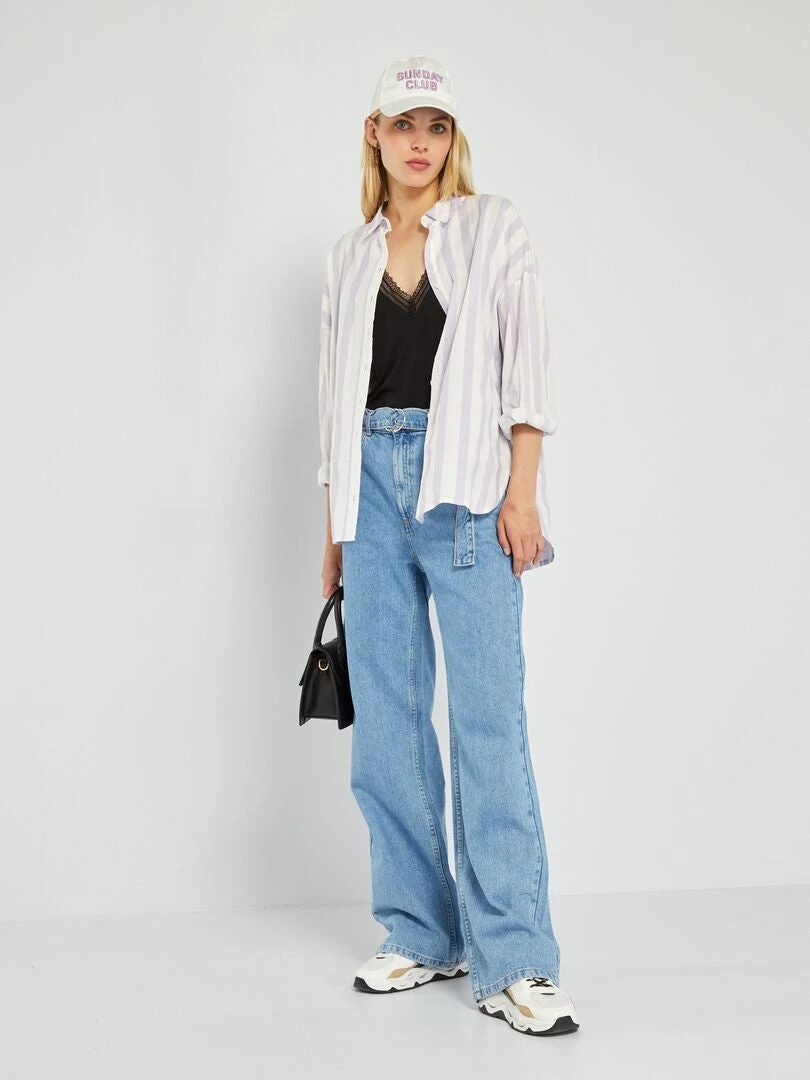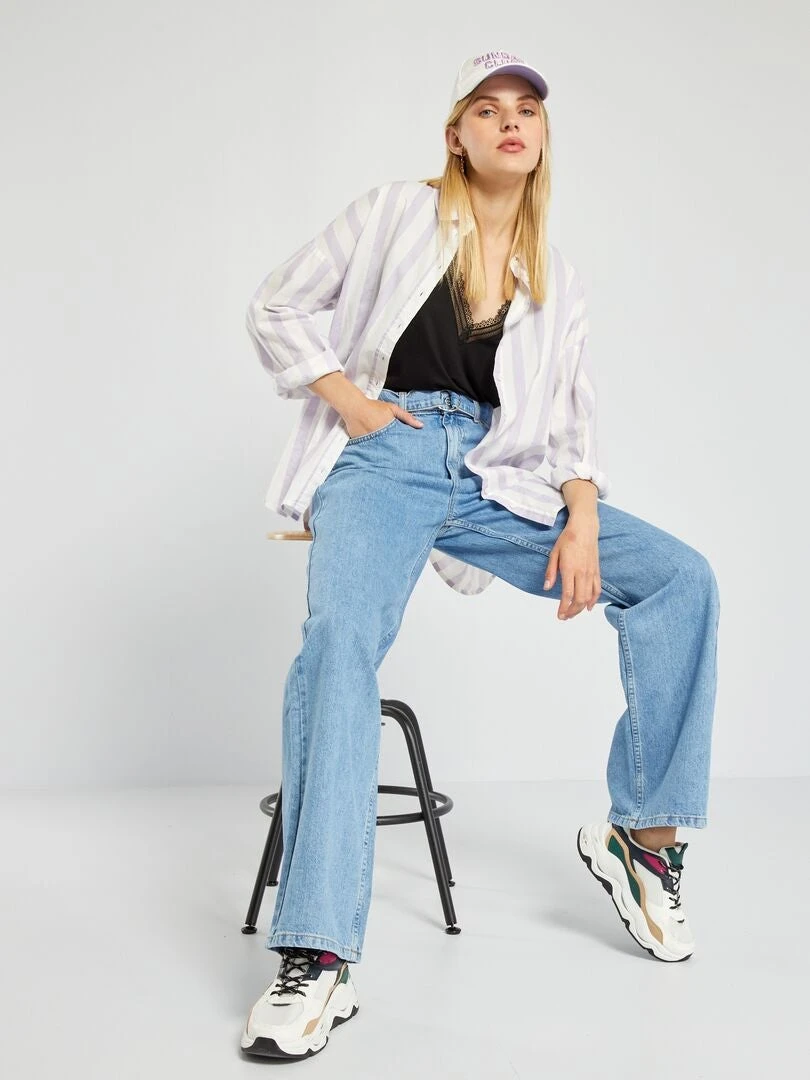 El vaquero wide leg es nuestra prenda del momento. Su tiro alto estiliza tu figura y su forma ancha aporta un estilo retro 😉