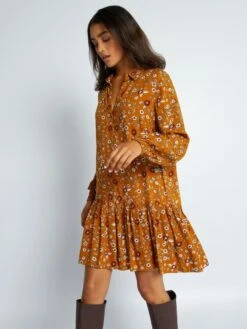 Un vestido camisero con un estampado veraniego y acabado evasé.