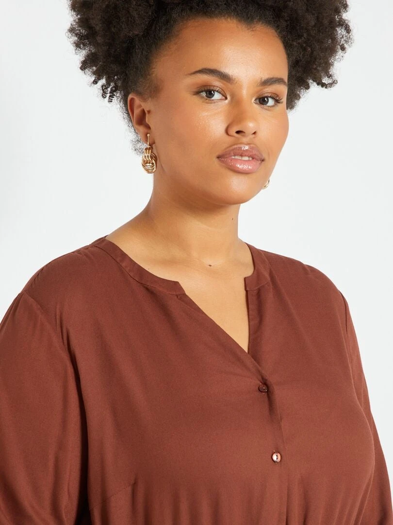 – Cuello de pico con cierre de botones