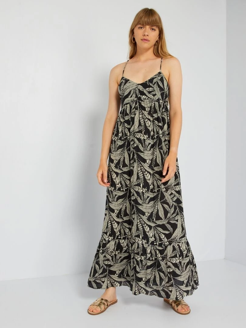 – Vestido largo con acabado a capas