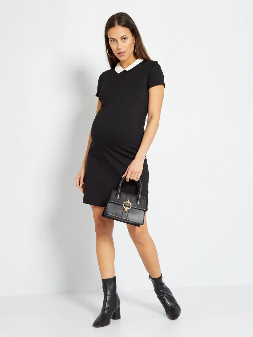 ¡Nos encanta el cuello bebé de este vestido premamá!