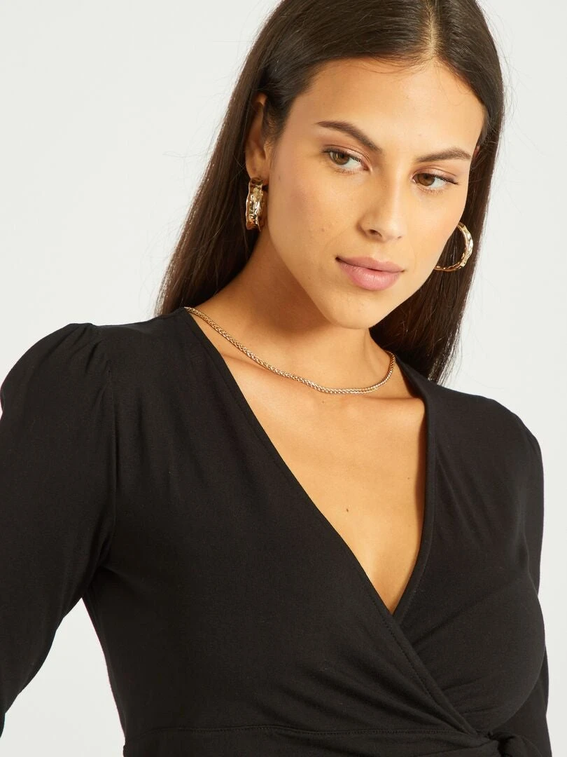 – Escote de pico cruzado